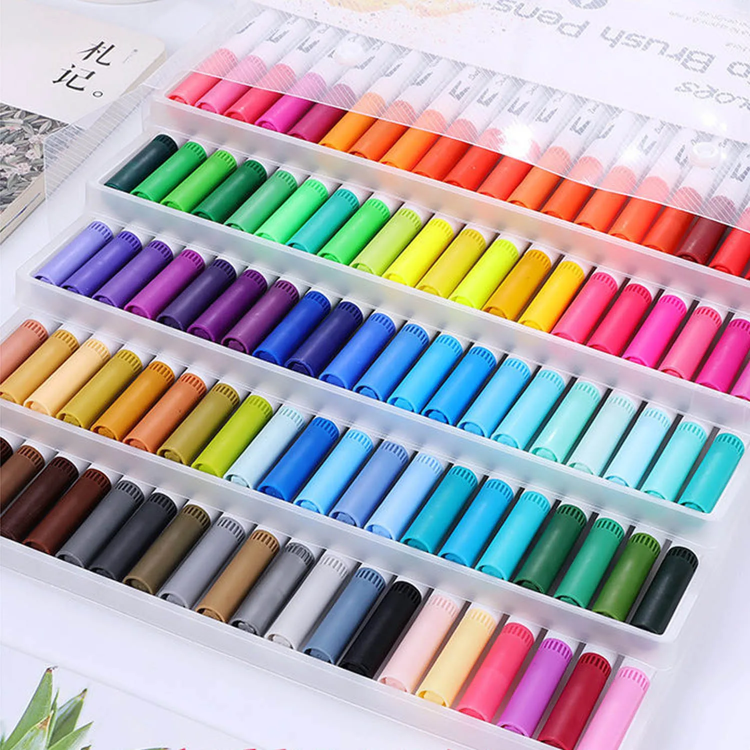 HOT SALE 100 Colors Dual-Tip Watercolor Marker Water Coloring Brush Pen Set for Kids Adults Artists Painting