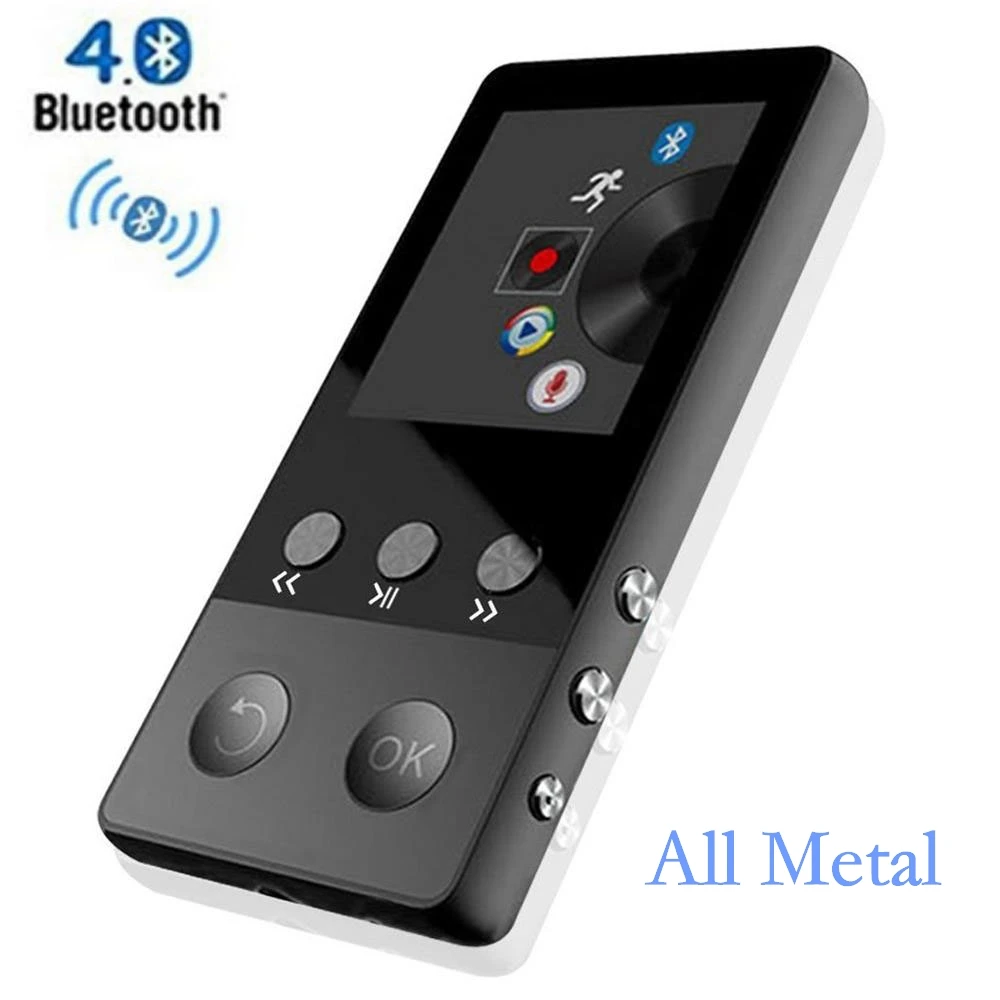 HiFi Metal MP4 Player with Bluetooth 8GB 2.0 Inch Screen Play 80 hours can Support 64GB SD Card wit